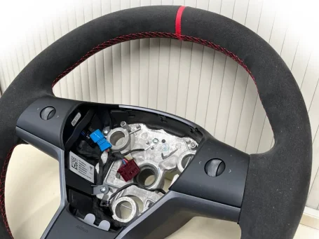 - Lenkrad Alcantara, rote 12 Uhr Markierung und rote Nähte (Link zu SilentDrive)