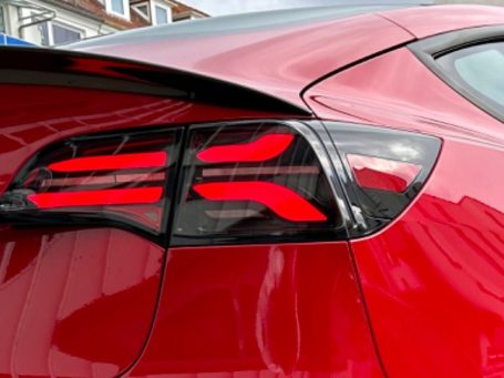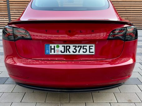 - Schwarzer Tesla-Schriftzug hinten und entfall der Modellbezeichnung.