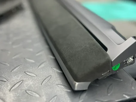 - Für die Füße werden Carbon-Fußablagen mit Griptape verwendet, um ein Wegrutschen zu verhindern