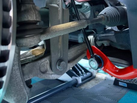 Neue Bremsscheiben und Beläge sind fällig. Für den TÜV mussten die Achsschenkel erneuert werden, und die Rücksitzbank wurde entfernt. Insgesamt wiegt das Auto aktuell 1.798 kg (ohne Fahrer).