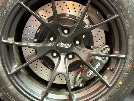 - Bremse AP Racing Pro 5000R – vorne 6-Kolben-Sättel mit 380-mm-Bremsscheiben, hinten 4-Kolben-Sättel mit 370-mm-Bremsscheiben, ergänzt durch einen separaten Sattel für die Parkbremse. ApexGT Brakes, USA/Deutschland übernahm die komplette Planung und Herstellung der Bremsscheiben, Töpfe, Beläge sowie der benötigten Adapter.